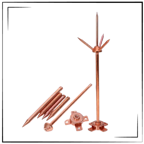Earthing Rods β Solid copper, copper bonded, or galvanized iron rods driven into the ground.